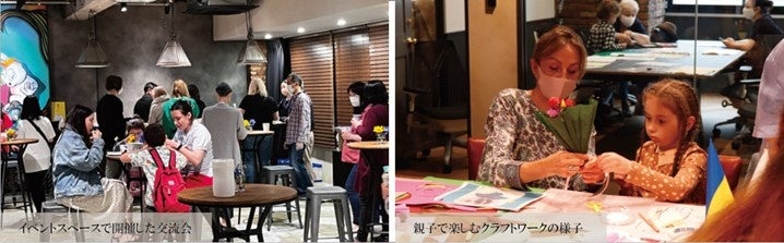 当社が運営するアートオフィスA YOTSUYAは、「Brooklyn×Art×Office」をテーマとした1棟シェアオフィスで全22 室各部屋に、世界にたったひとつのミューラルアート(壁画)が描かれています。各階の中央に設けられた広々としたシェアラウンジや共用ルーフバルコニー、約100名収容の地下1階イベントスペースを備え、開放的でゆったりと交流していただける空間が広がっています。こちらの開放的なアートオフィスにて、ウクライナから日本へ避難された皆様をサポートする“ウクライナカフェ HIMAWARI”を開設し、運営をサポートさせていただきました。
