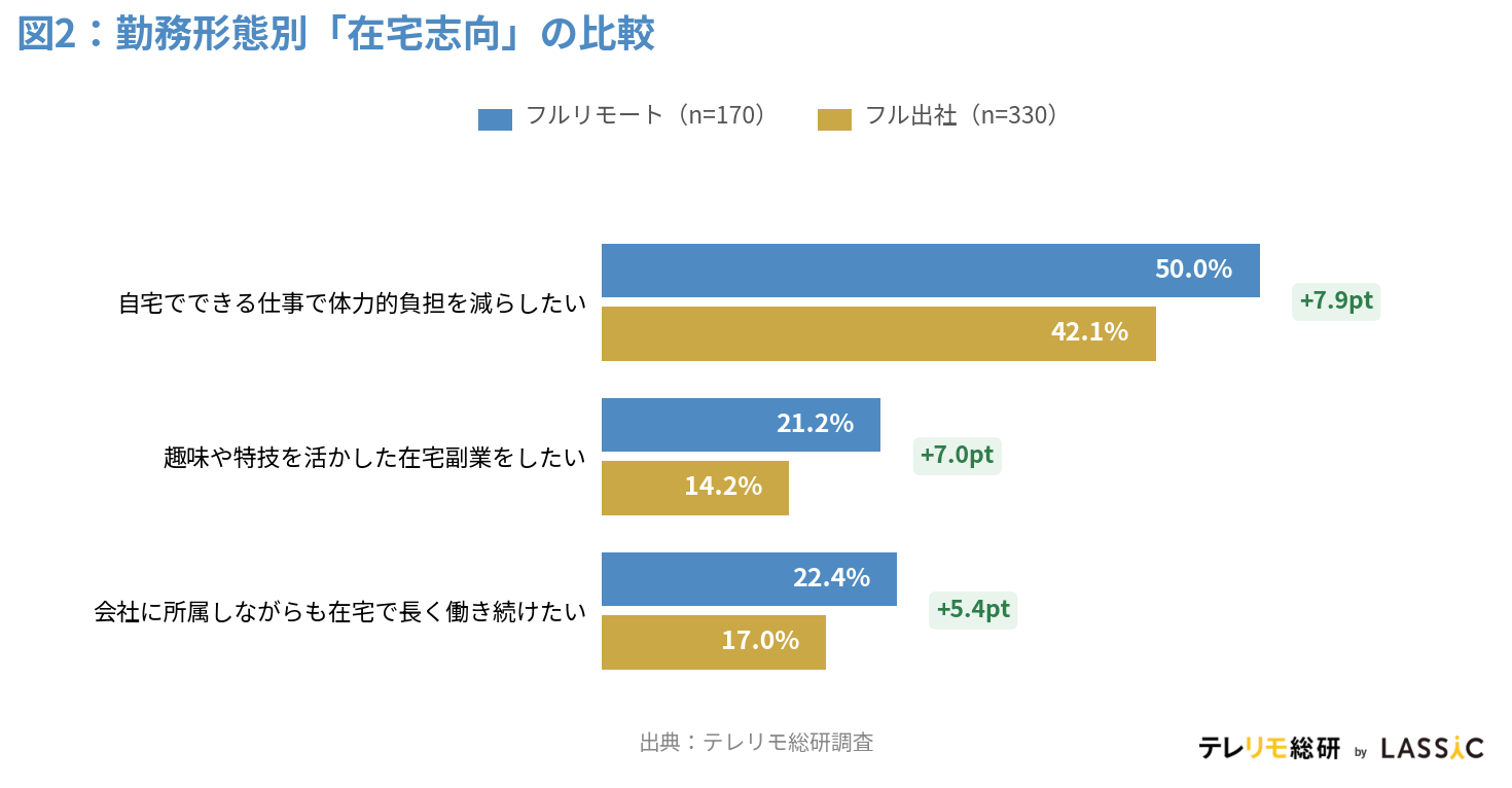 2. フルリモート勤務者の50.0%が在宅志向——フル出社者より7.9ポイント高い結果に