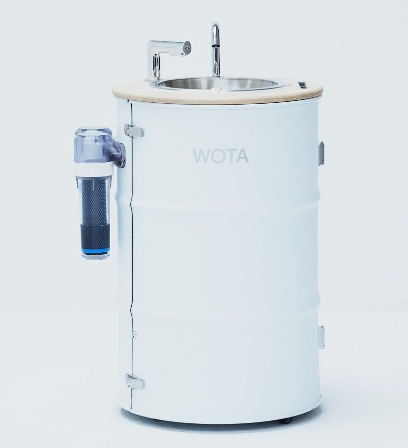 最初の製品として2019年に発売した「WOTA BOX」は、生活排水の98%以上を再生して循環利用することを可能にする可搬型の水再生処理プラントです。水道による都市単位の水循環を、わずか0.25㎥のサイズの装置で実現しており、災害による断水など、水道がない状況下での継続的な水利用を可能にします。次の製品として2020年に発売した「WOSH」は、水道が無い場所にも設置できる水循環型手洗いスタンドです。流水による手洗いに加えて、スマートフォンの表面を99.9%以上除菌する機能も搭載しており、公衆衛生・空間衛生のアップデートに貢献します。