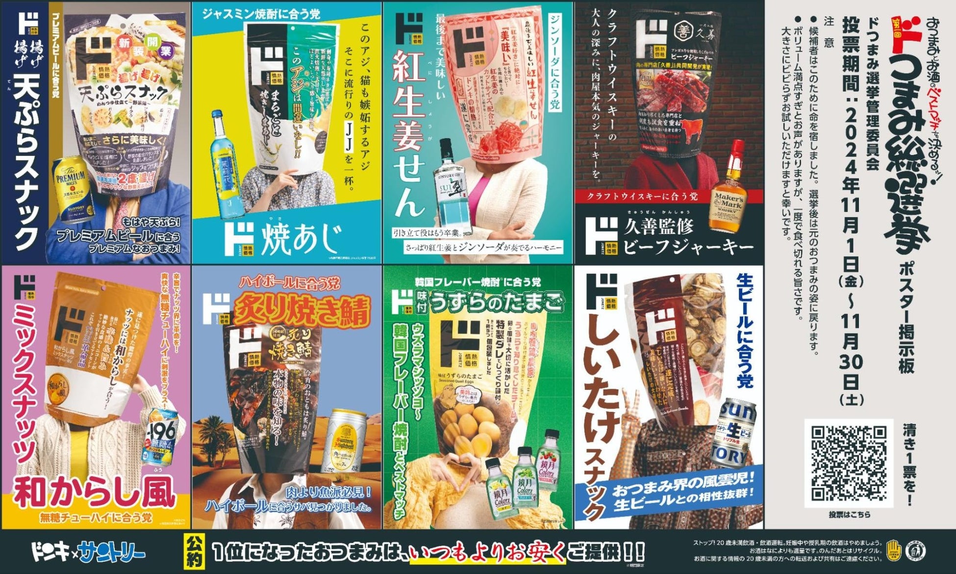 「第一回ドつまみ総選挙」は、2024年11月1日(金)より全国のドン・キホーテ系列店舗(一部店舗を除く)にて開催される予定です。