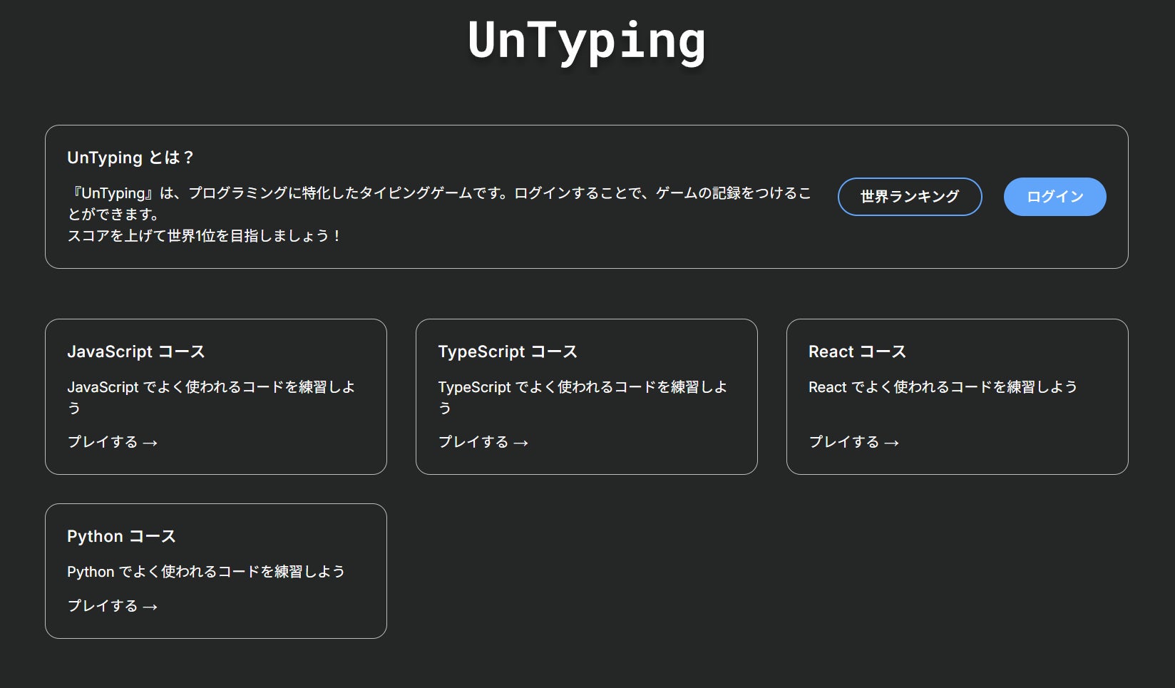 UnTyping は、プログラミングの練習に特化したエンジニア向けのタイピング練習ゲームです。