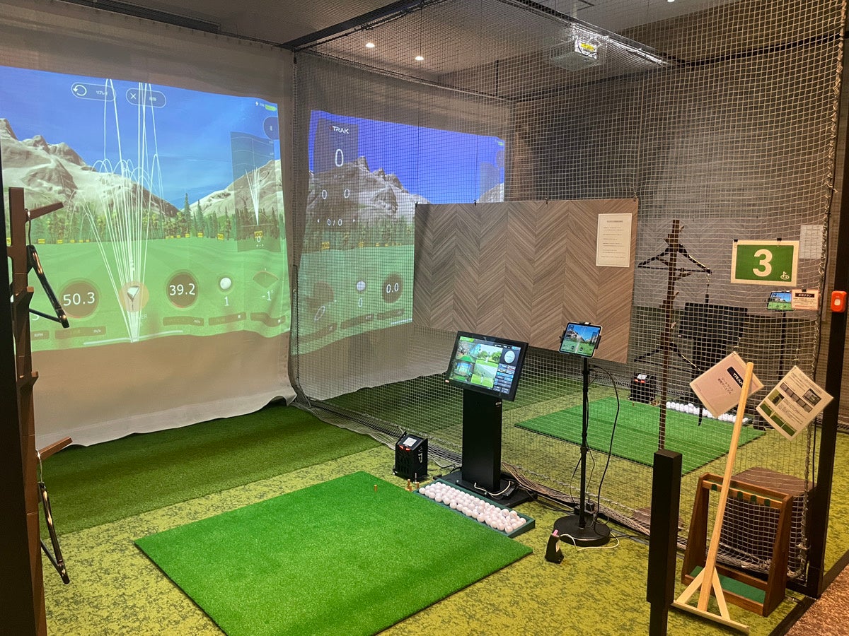 ■打席数:5打席 スイング解析機と弾道測定器(「GTRAK」)を完備。全打席スクリーン投影式。