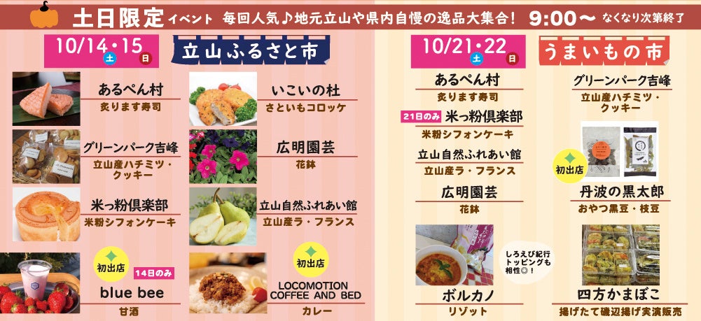 ・【土日限定】立山ふるさと市・うまいもの市 9:00~ ※なくなり次第終了です