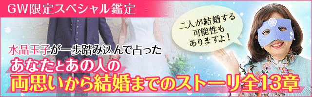 この度、月額公式サイト『水晶玉子 陰陽艶花占』にて『ゴールデンウィーク限定スペシャル鑑定』を公開いたします。この期間でしか見られない気になるあの人との未来を占います。この機会をどうぞお見逃しなく!