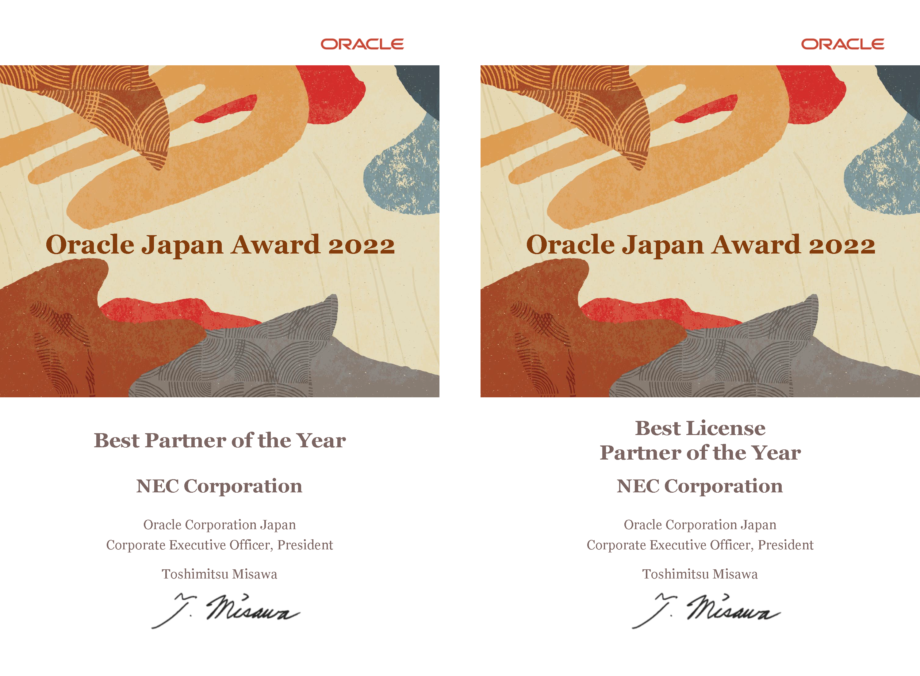 NEC、Oracle Japan Award 2022において最高位の「Best Partner of the Year」を含む2賞を受賞