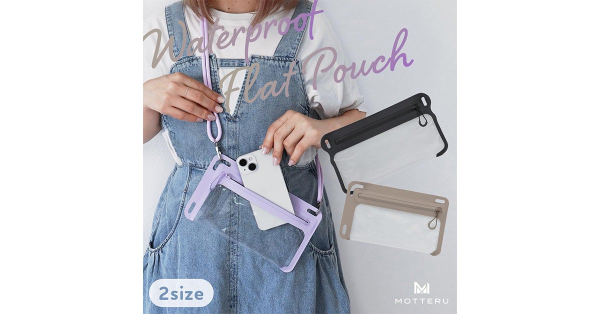 新たにスモール(ラテグレージュ・ペールアイリス)とプラス(スモーキーブラック)の2サイズの防水フラットポーチを、2024年5月2日からMOTTERU公式オンラインショップ含むECモール・一部店舗で販売を開始します。