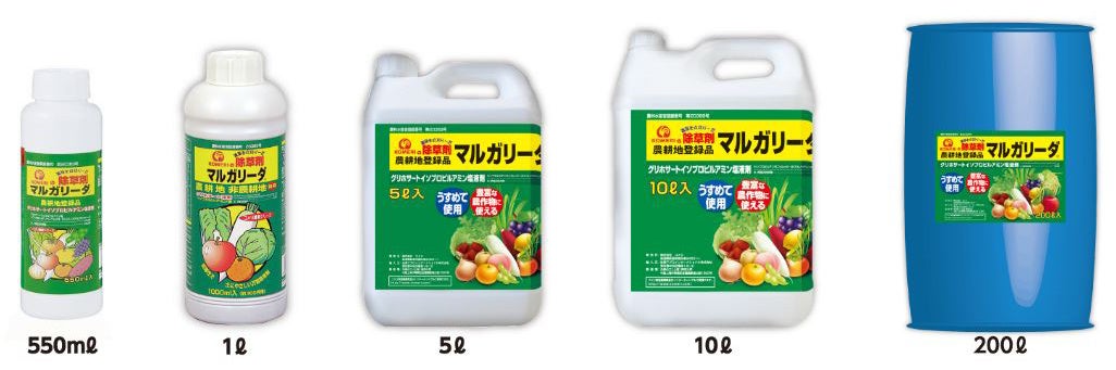 マルガリーダは、コメリオリジナルのグリホサート系除草剤です。散布された薬液は雑草の茎と葉から吸収され、根まで枯らします。農薬取締法に基づく試験を行い、農林水産省より登録を受けている製品です。