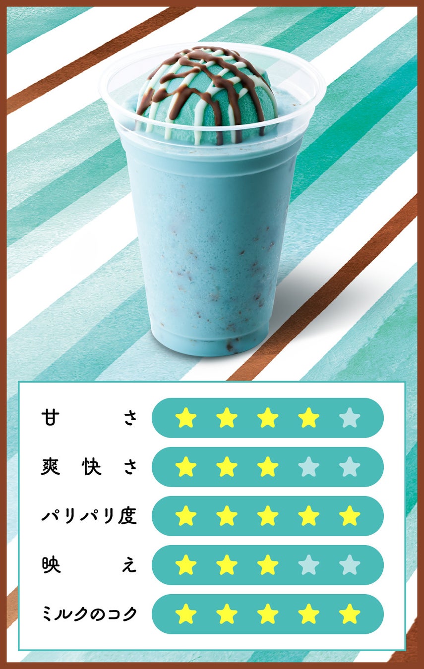 さらに、デザートドリンクとしての満足感にもこだわり、ぱりぱり食感の2種類のチョコレートをアイスの上にトッピング。ドリンクの中にもホワイトチョコレートを加えることで、最後の一口までチョコミントの美味しさを堪能できるドリンクに仕上げました。