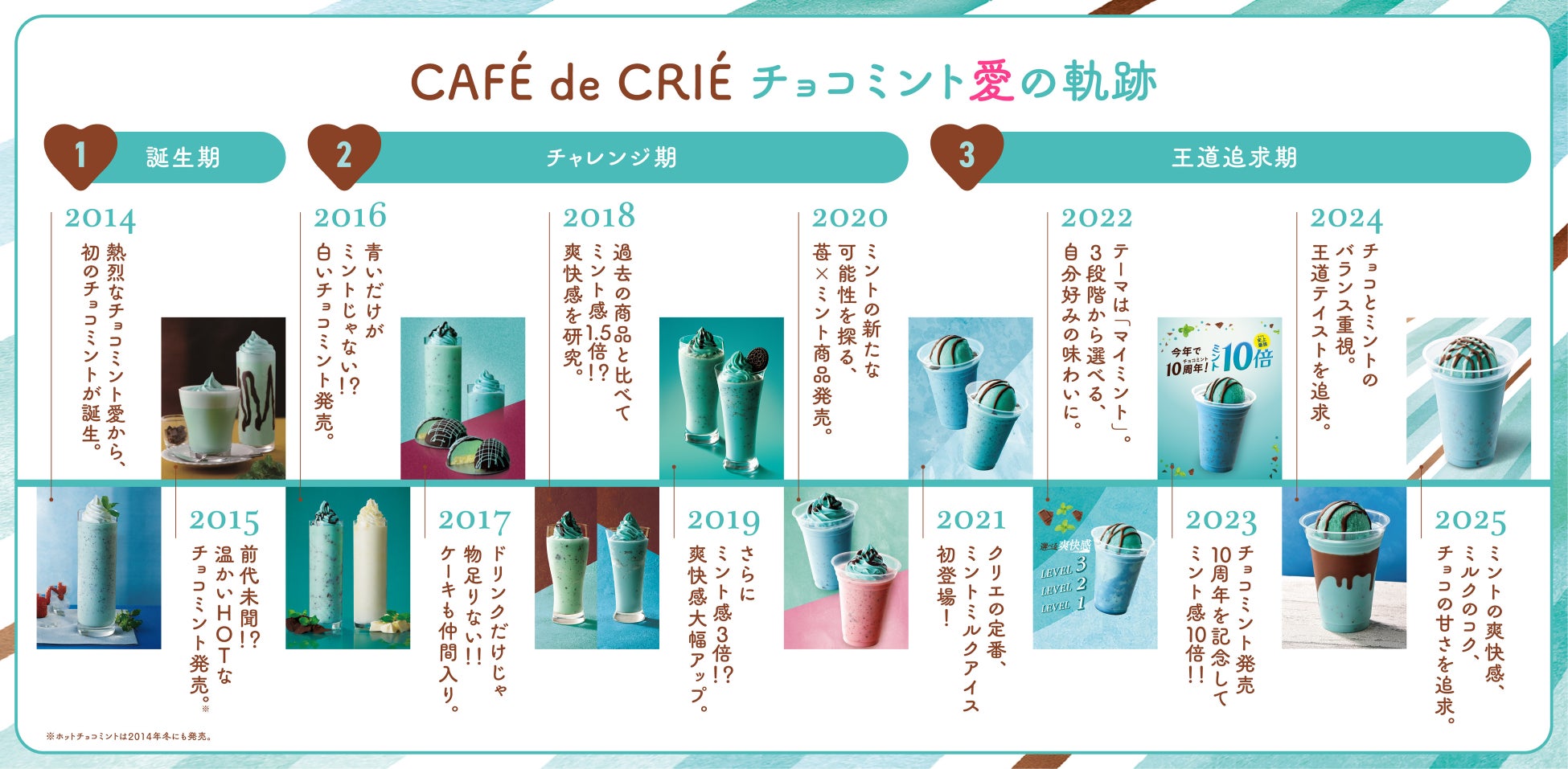 冬に楽しめるチョコミントドリンクは、今までになかったユニークな商品として『カフェ・ド・クリエ』の歴史に名を刻みました。