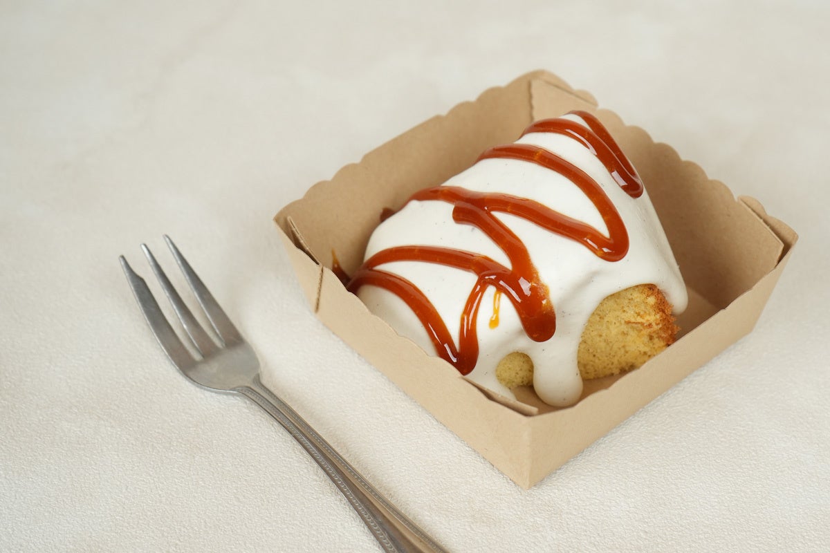 苦みの利いたキャラメルソースがクリームの甘みと重なり合い、飽きの来ない味わいを生み出しています。