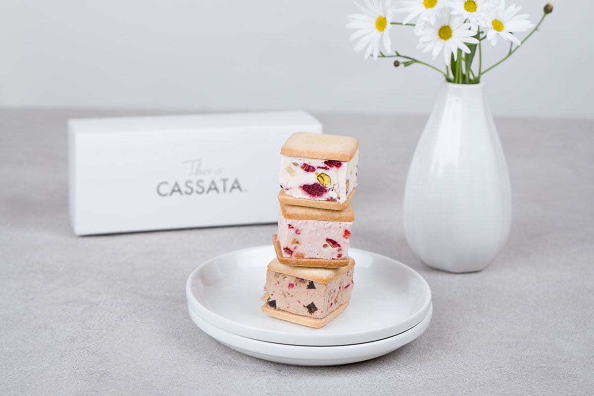 カッサータサンドとは、カッサータを食べやすいサイズにカットし、アーモンドたっぷりのサブレで挟んだ片手で食べられるスイーツです。