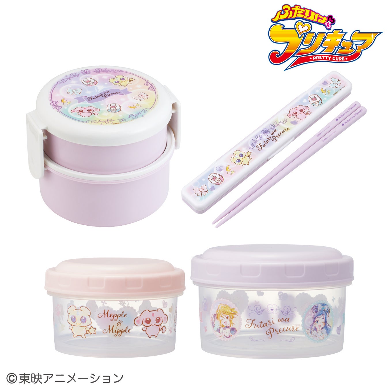 丸型ランチボックス2段 (フォーク付) ふたりはプリキュア 水彩