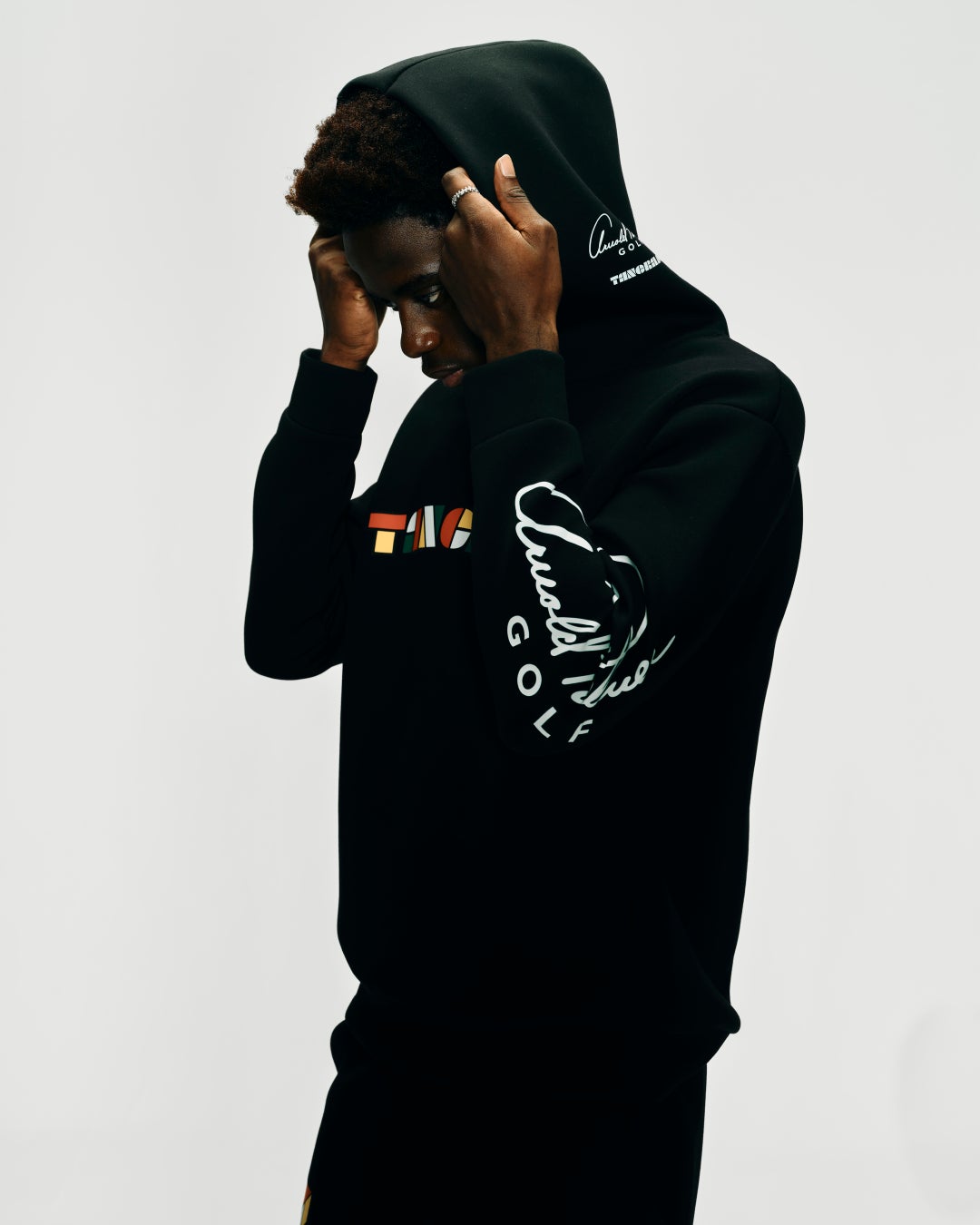 熊谷隆志がゴルフシーンにクラシックでストリートの要素を活かし融合したブランド「TANGRAM(タングラム)」が、株式会社イーカムグループ(以下イーカムグループ、東京本社:渋⾕区神宮前 福岡本社:福岡市、代表取締役:迎 祐次)がライセンス契約をしている「ARNOLD PALMER(アーノルドパーマー)」とのコラボレーションアイテムをリリース。アメリカの伝説的な天才プロゴルファー、アーノルドパーマー氏の名前を冠したブランドで知られる、ARNOLD PALMER GOLFと初のコラボレーション。今回のコレクションはARNOLD PALMERのアイコンである「傘ロゴ」のデザインを活かしつつ TANGRAMのエッセンスとゴルフウェアーとしての機能性を兼ね備えたアイテムをラインナップ。 ベースカラーはオールブラックにこだわりコラボロゴのカラフルなプリントカラーが目を惹くストリートでスポーティなコレクションです。TANGRAMオフィシャルオンラインサイトにて2024年12月21日(土)11時より販売スタートします。