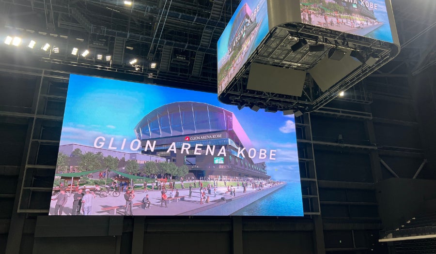 GLION ARENA KOBEには、バスケットボールは勿論、幅広い自主イベントを想定し、国内最大級、高さ13m、幅24mの常設LEDビジョンが設置されています。また世界的なスピーカーブランドであるd&b製の連結ラインアレイスピーカー7基をはじめ、全50基のスピーカーで大迫力のエンタメ空間を演出します。