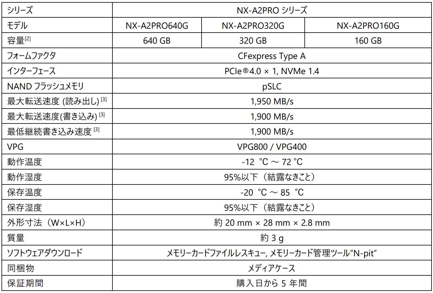 CFexpress 4.0対応CFexpress Type Aメモリーカード:NX-A2PROシリーズ