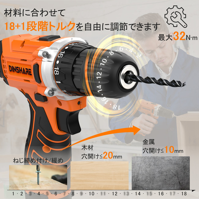 - 【最大トルク32N·m&18+1段階トルク調整】