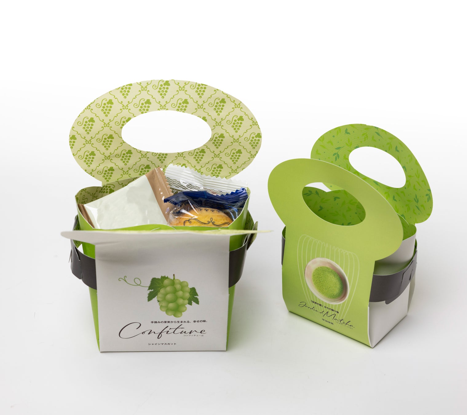 試作品では、フルーツのコンフィチュールやジャム、抹茶クッキー、焼き菓子などを想定して3種のデザインを企画・製造しました。