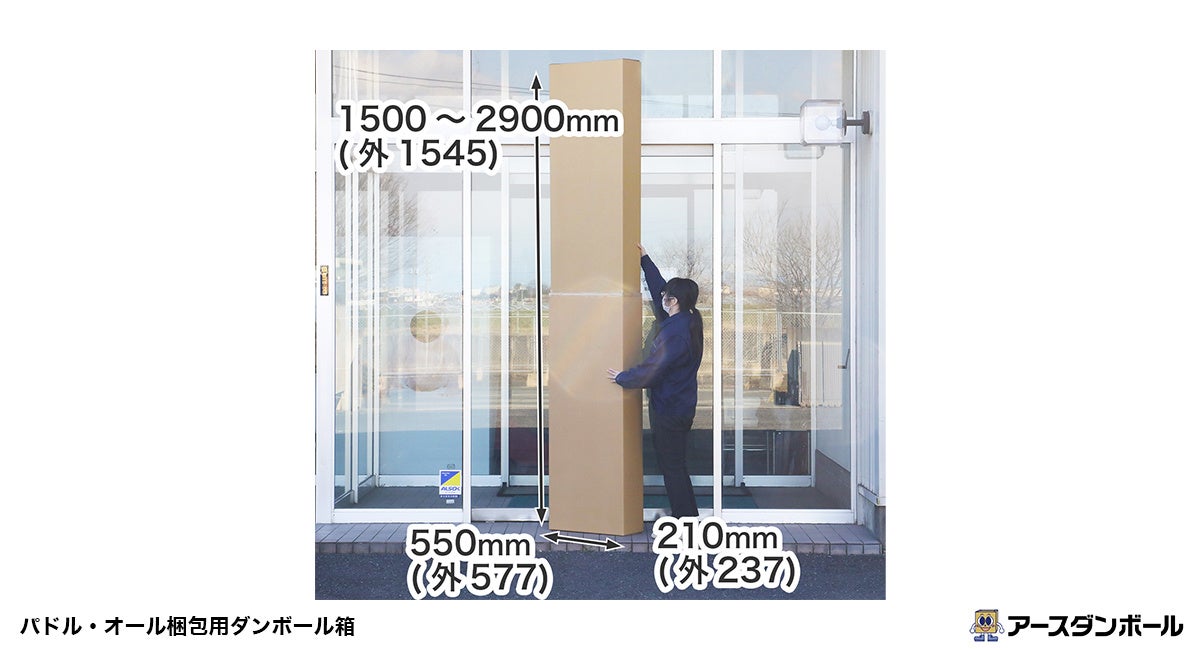 パドルやオールのシングルブレード、ダブルブレードに対応した伸縮式の段ボール箱がアースダンボールから新登場