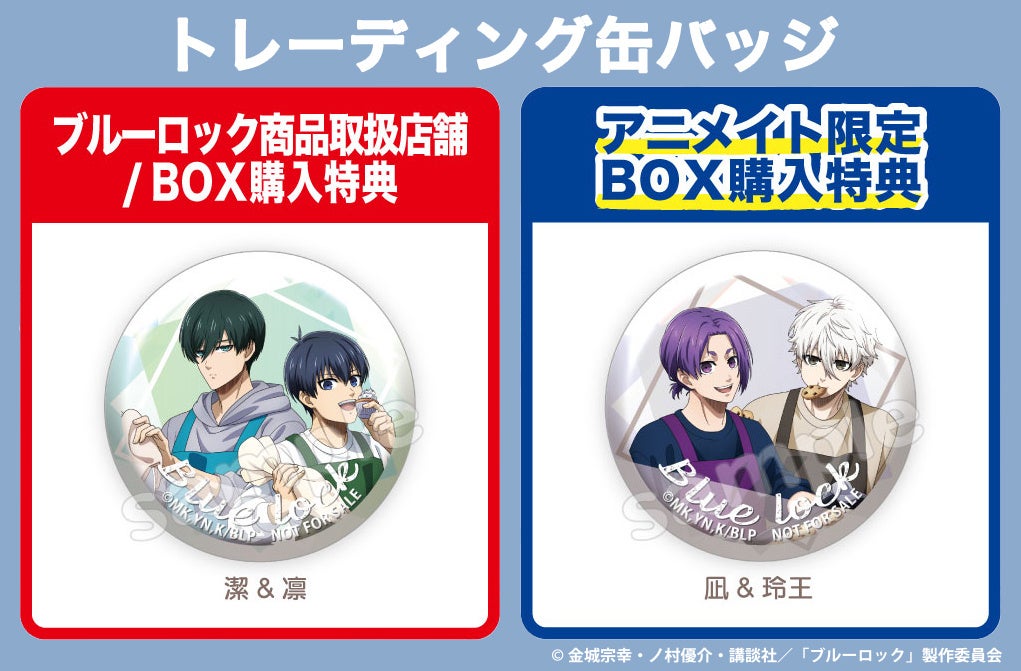 味見をしたり食器を洗ったり、楽しいスイーツタイムがテーマの描き下ろしイラストを使用したグッズが登場。潔 世一や蜂楽 廻をはじめとする6人のキャラクターの普段とは違う姿がたのしめるデザインが魅力です。セブンネットショッピング限定販売のステンレスタンブラーやアニメイト先行販売アイテムのアクリルスタンドやクリアファイルなど豊富なラインナップで展開します。何が出るかはお楽しみのトレーディング缶バッジ、トレーディングアクリルキーホルダーはBOX購入でうれしい特典がつきます。