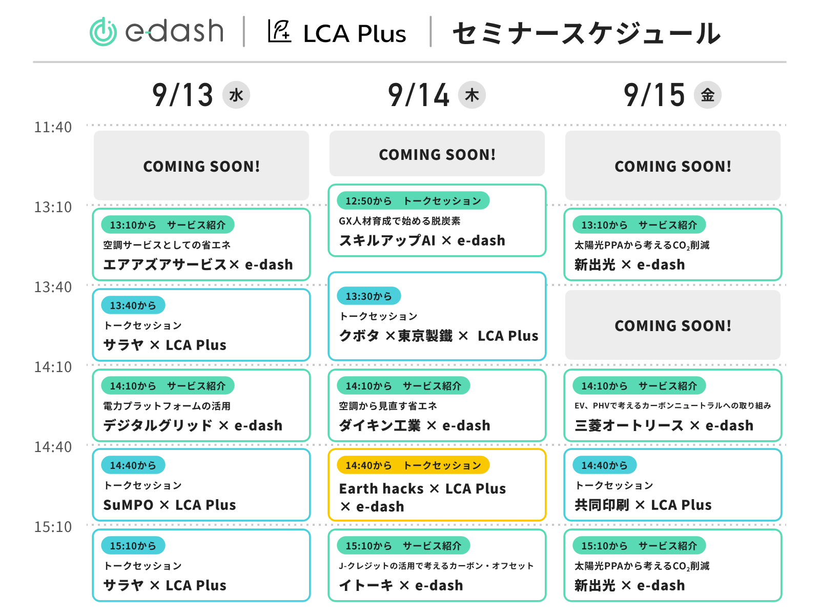 セミナー&トークセッション開催スケジュール