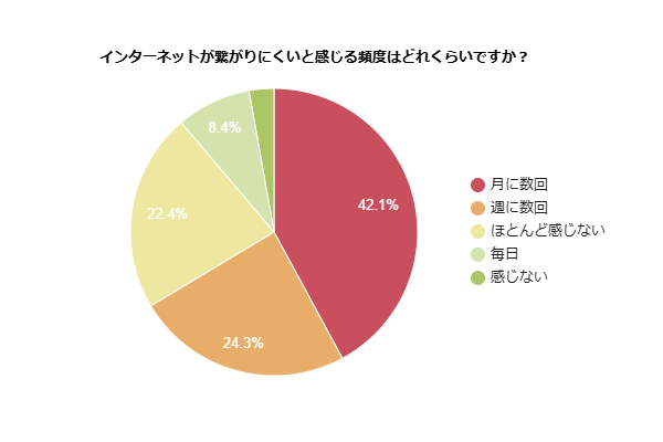 42.1%の人が月に数回ネットが繋がりにくいと感じている