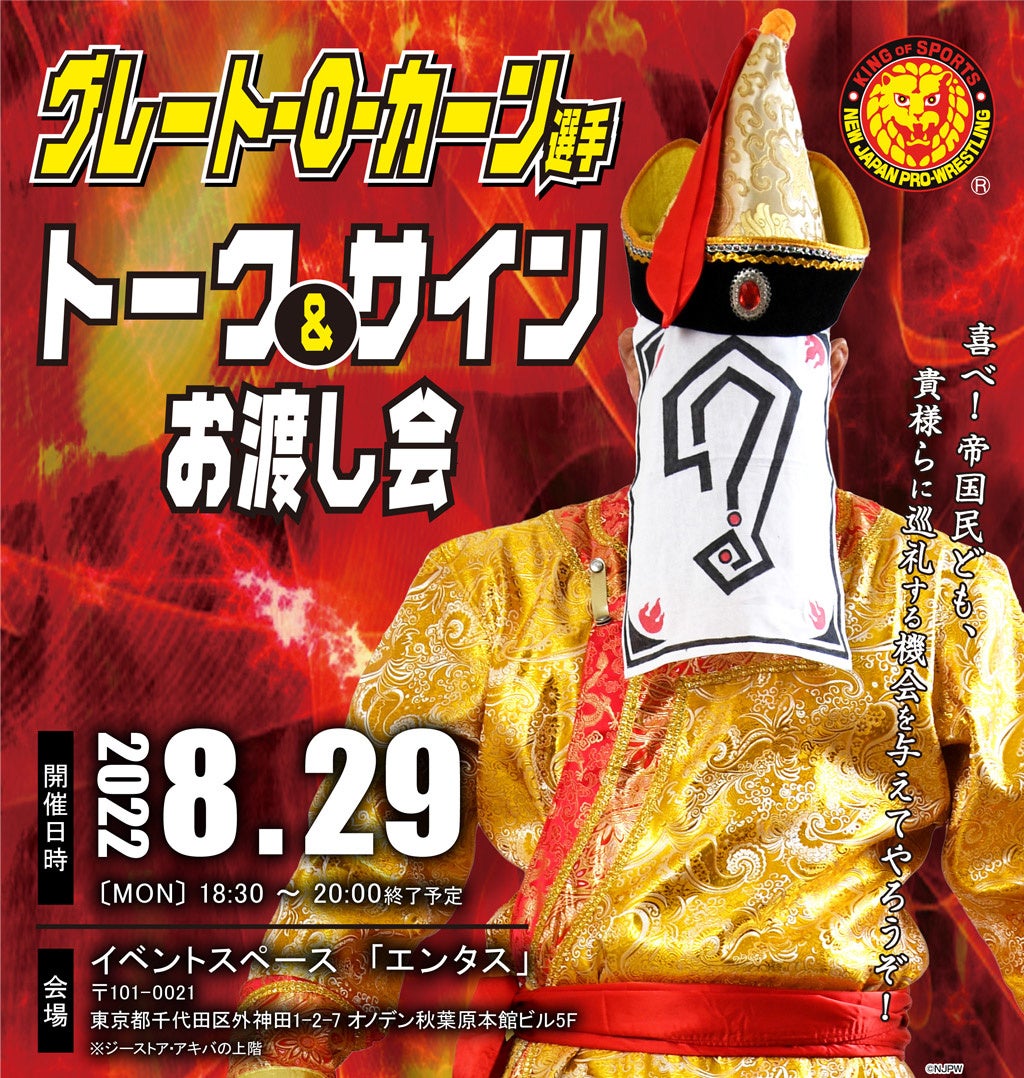 心の聖地「アキバ」に凱旋!!8/29(月)"ドミネーター"グレート-O-カーン選手<トーク&サインお渡し会>開催!【タブリエ・マーケティング株式会社】