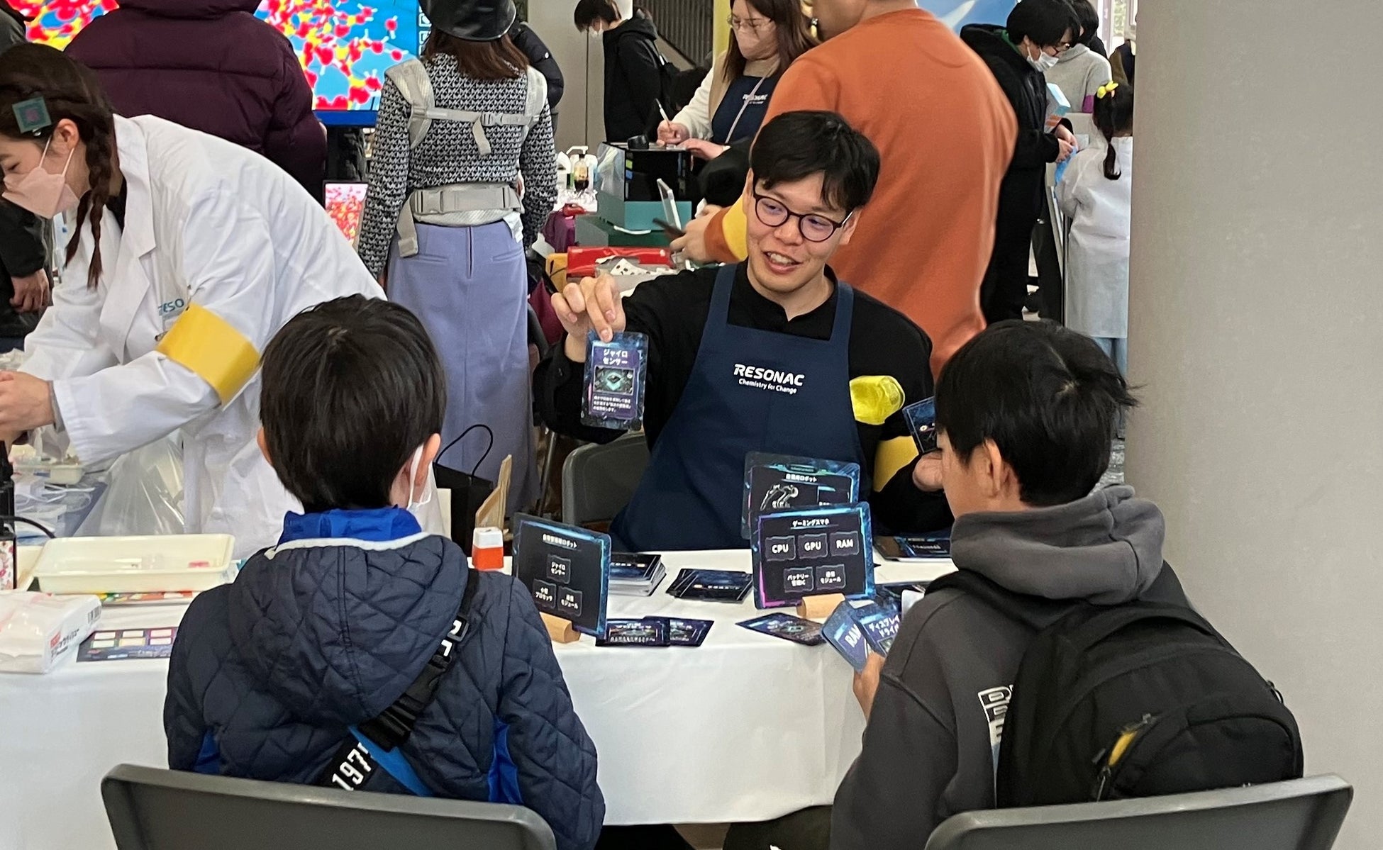 株式会社レゾナック(社長:髙橋秀仁、以下、当社)は、1月24〜26日に横浜市で開催された、「YOXO FESTIVAL(よくぞフェスティバル)」において、半導体について学べるボードゲーム体験会および実験教室を開催しました。ボードゲームは、当社の有志が「ゲームという楽しい体験を通して、半導体について学べる機会を提供したい」という思いで、コンセプト・デザインを含めて新たに制作したもので、今回初めて公開しました。子どもたちは、ゲームを通して身近にある、ロボット掃除機やドローン、スマートフォンなどに、CPU(中央演算処理装置)や通信モジュールなどの半導体がどんな組み合わせで搭載されているのか、楽しく学びました。