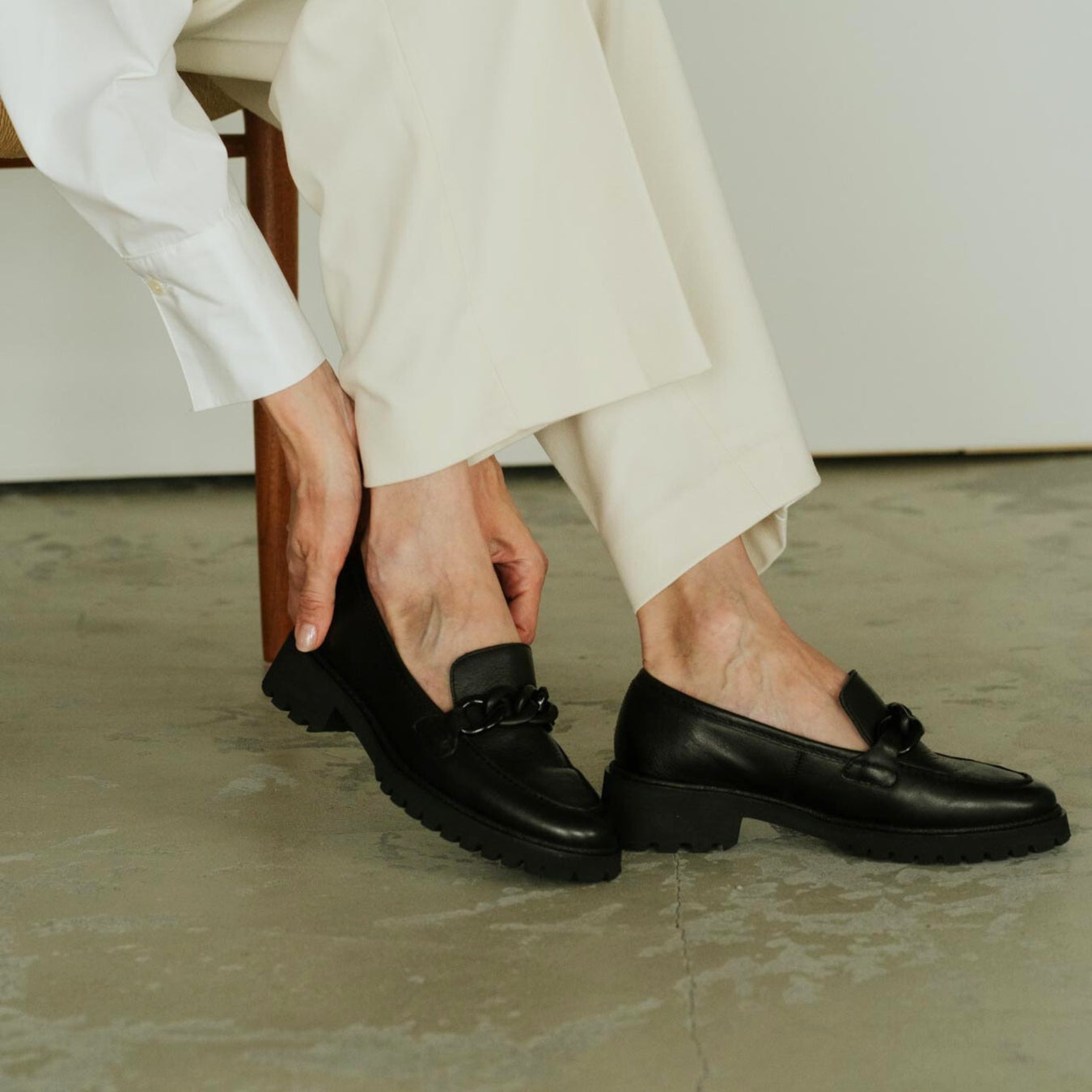 シーズンより大好評のボリュームローファーは今シーズンも継続。 エレガントな足元を演出してくれるカラーMOON。ソールのカラーまでこだわった絶妙なカラーはaraならでは。 何かと使えるオールブラック。トレンドな足元とユーズフル、両方が叶う優秀なローファーです。※POP UPでの展開はMOONのみとなります。