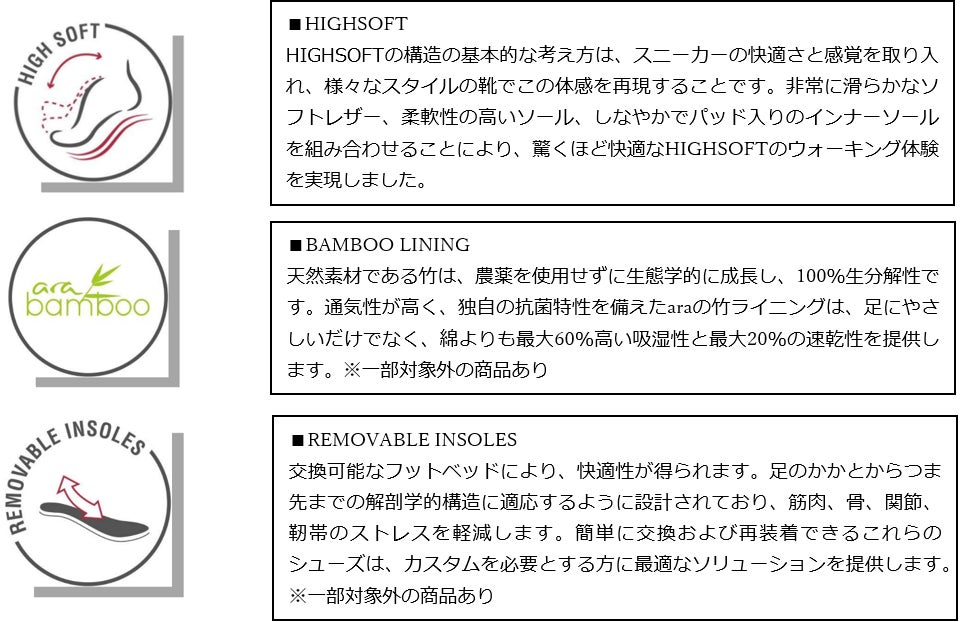 1949年に創業したドイツブランド「ara」。解剖学的に設計し、職人の伝統的なスキルに加え革新的なテクノロジーへの投資を続けています。 “Fashion&Function”はファッション性と機能性を兼ね備えた独特のコンビネーション。刷新的かつ快適なファッションへのアプローチを求めるモダンな女性のための高品質なシューズを取り揃えています。