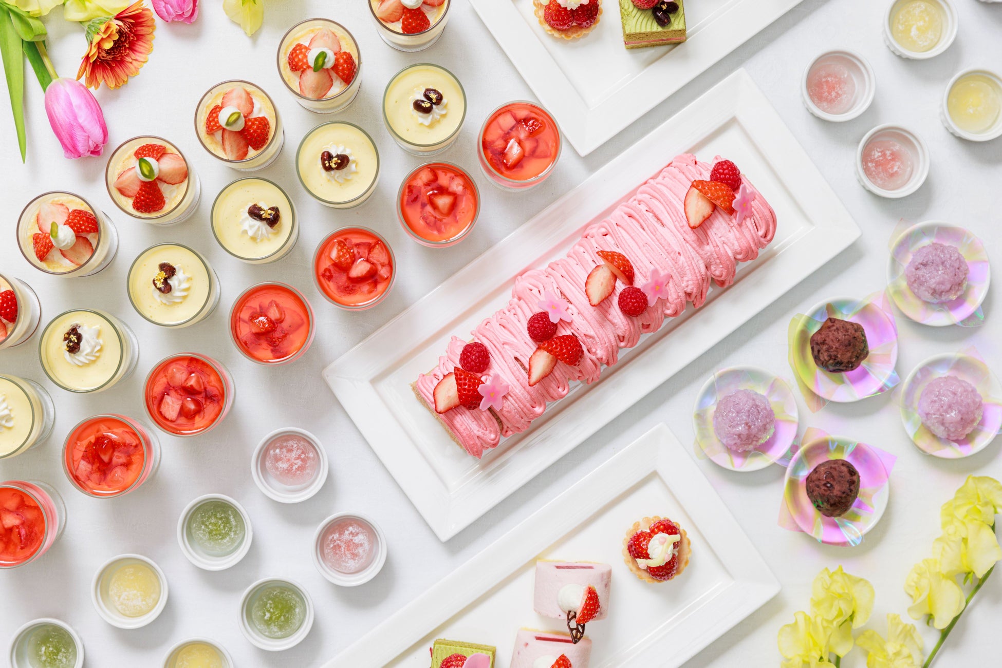 デザートコーナーには、満開の桜をイメージした「苺のモンブランロール」や「桜パンナコッタ」など、お花見気分をさらに盛り上げる、旬の苺をたっぷり使った春色スイーツや和菓子が勢ぞろい。