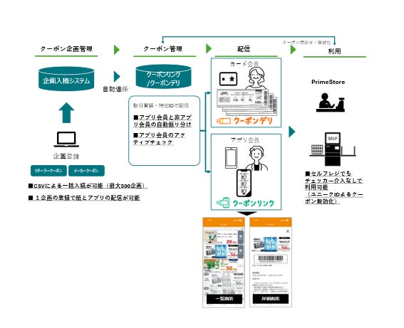 今回提供開始する「クーポンリンク」は、小売企業のアプリクーポンと紙クーポンを統合的に運用できるクーポン配信サービスです。