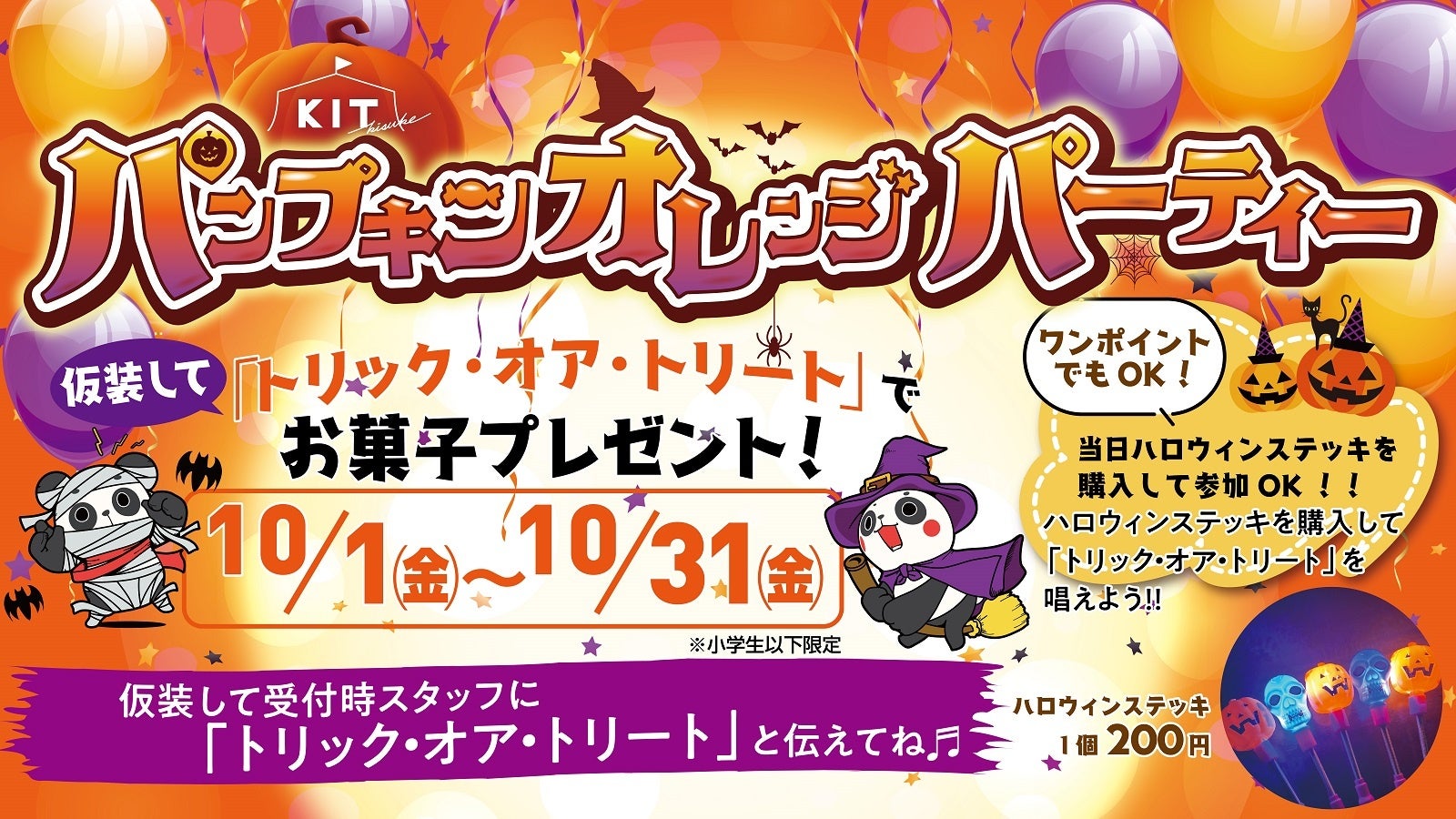 親子で楽しむハロウィン!! 四国最大級のエンタメ施設 キスケ KITが「パンプキンオレンジパーティー」を開催!!【愛媛・キスケ】