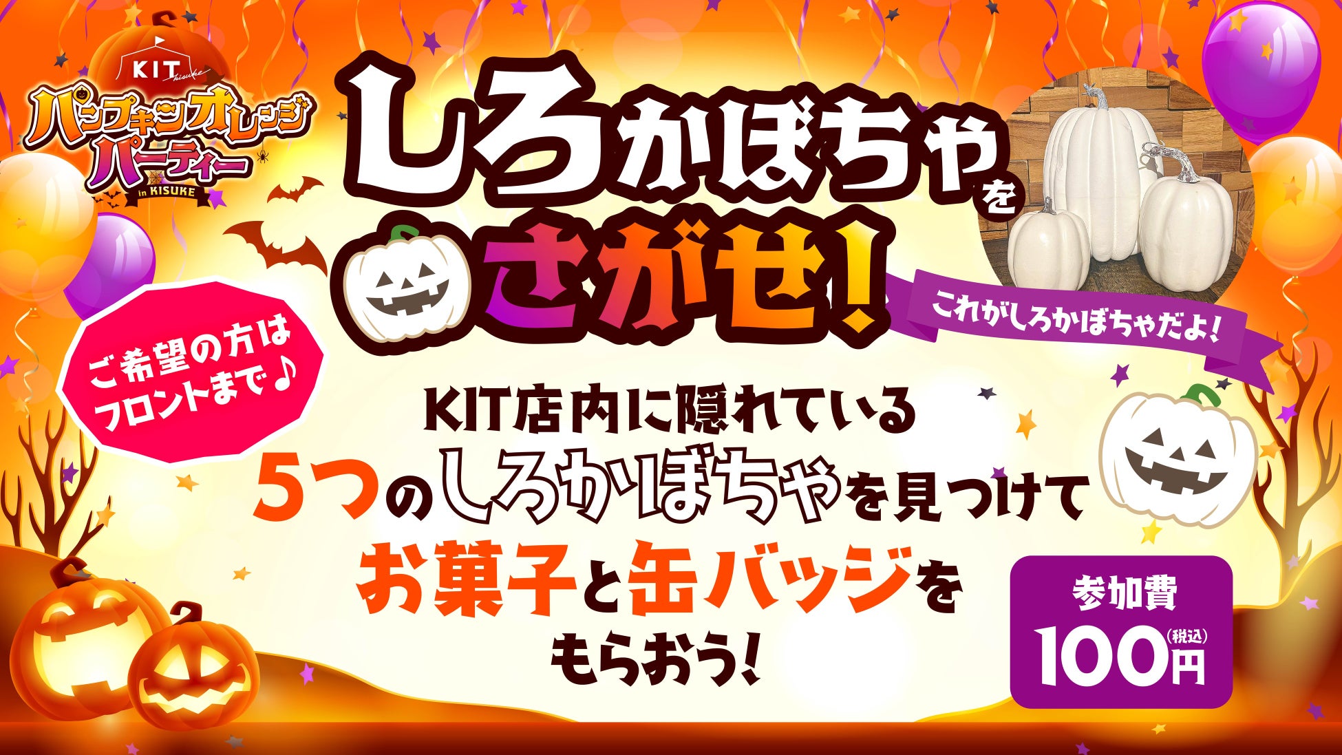 キスケKITでは、「フォトスポットインスタキャンペーン」白かぼちゃを探せスタンプラリー」「ハロウィンピニャータ」「お菓子まき」「トリック・オア・トリートでお菓子プレゼント」「ハロウィンビンゴ大会」「仮装コンテスト」などイベント満載で、ファミリーで思いきり楽しめることができます。