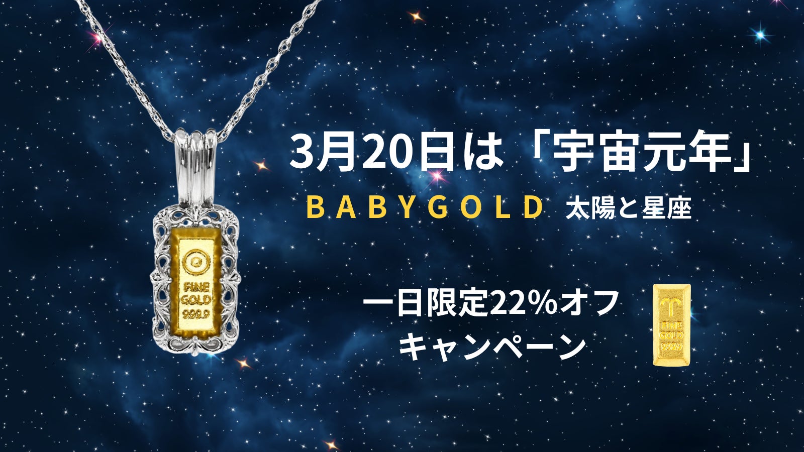 ご存知でしたか? 3月20日は宇宙元年の日。「BABYGOLD」シリーズが、1日だけの22%オフセールで販売開始。
