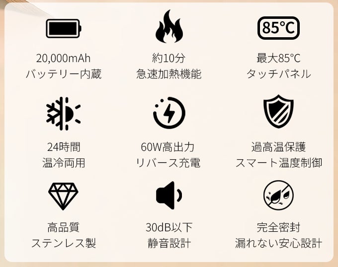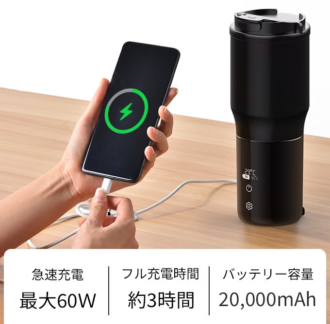 【急速加熱機能・リバース充電・20,000mAh大容量・ステンレス鋼】