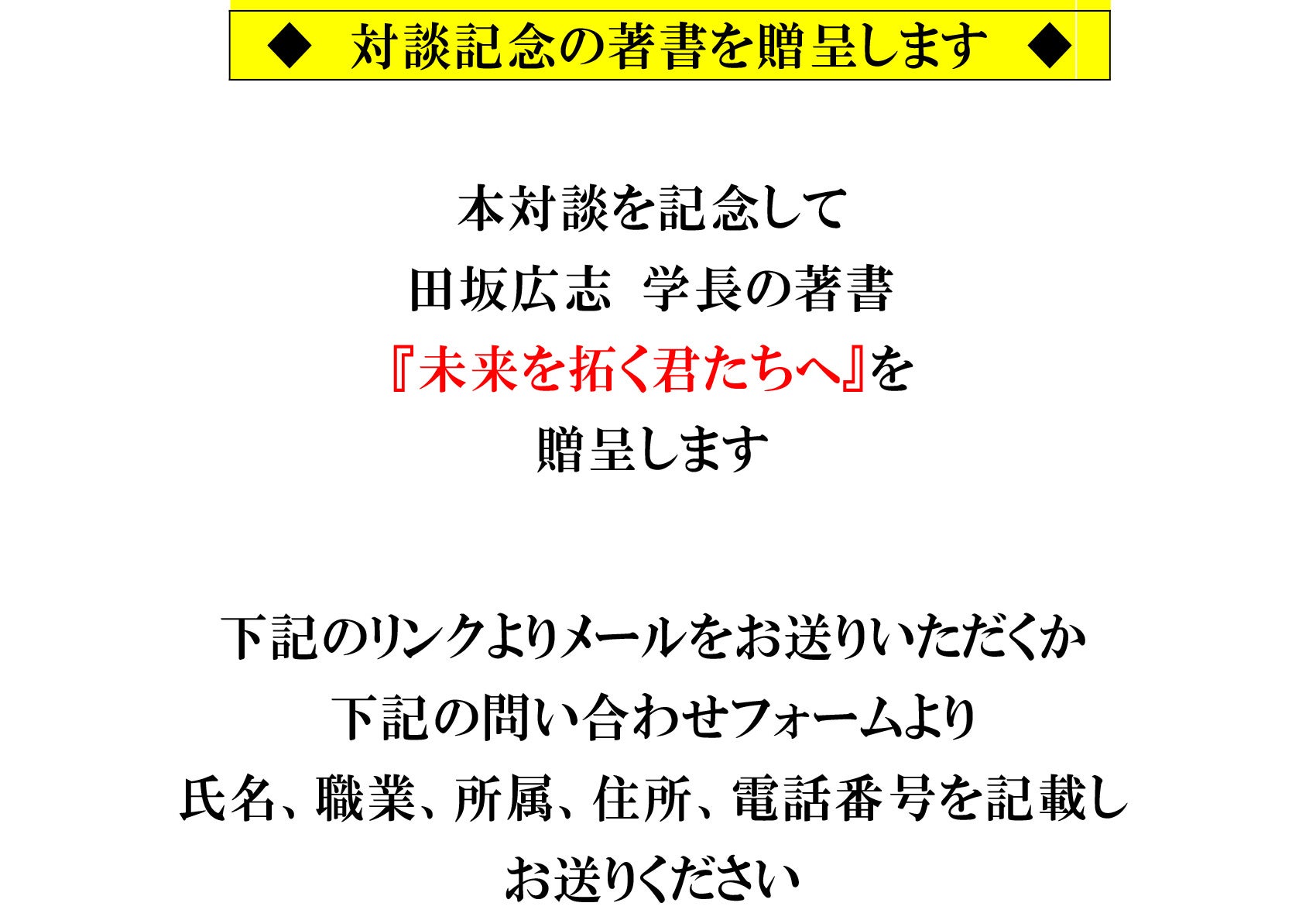 ◆ 対談記念の著書を贈呈します ◆