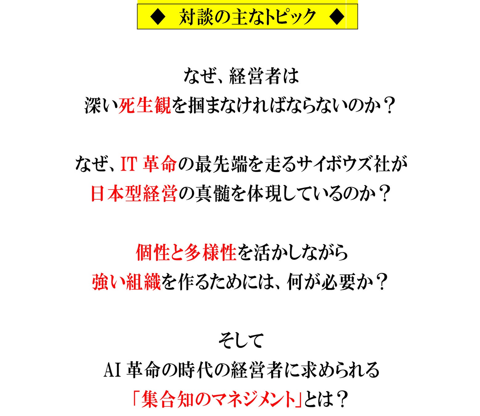 ◆ 対談の主なトピック ◆