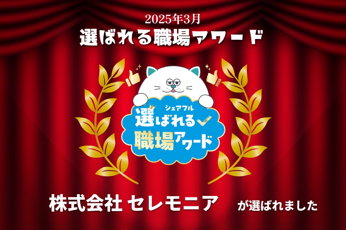 「はたらいて、笑おう。」をビジョンに掲げるパーソルグループのスキマバイトアプリ『シェアフル』やSaaSシフト管理サービス『シェアフルシフト』、就業実績を活用した人材紹介サービス『シェアフルエージェント』などを提供するシェアフル株式会社(本社:東京都港区、代表取締役社長:横井 聡)は、第4回となる月間「選ばれる職場アワード」を開催し、2025年3月度月間アワードは株式会社セレモニア(本社:神奈川県川崎市、代表取締役社長:鈴木 康伸)が受賞しました。このたび同企業への受賞インタビュー記事を公開しました。