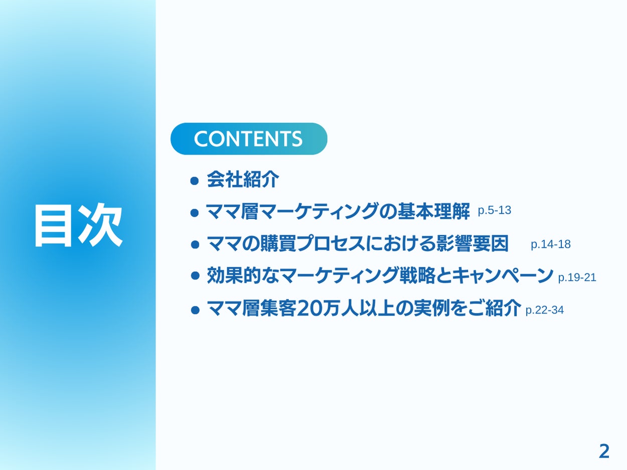 本レポートでは、ママ層の集客数UPをしたい方向けに、マーケティングのアプローチを弊社の実例をもとにご紹介しています。