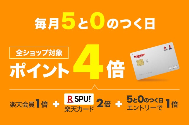 楽天市場のユーザーの皆様、毎月のお得なチャンスをご存知ですか?楽天市場では、0と5のつく日(5日、10日、15日、20日、25日、30日)にポイント4倍の特別SALEを開催しています。楽天会員で楽天カードをご利用のお客様は、通常の店舗ポイントに加えて、楽天からさらに4倍のポイントがもらえる絶好のチャンスです。普段のお買い物よりもさらにお得で、待ち望んだアイテムを手に入れるのに最適なタイミングです!
