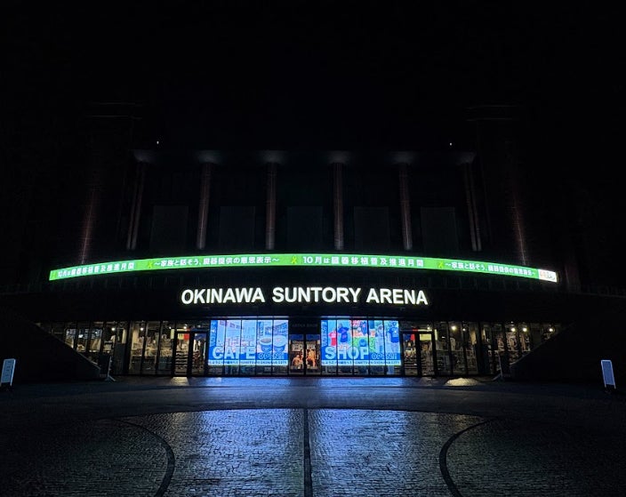10月は「臓器移植普及推進月間」に合わせ、沖縄サントリーアリーナをグリーンにライトアップしました。
