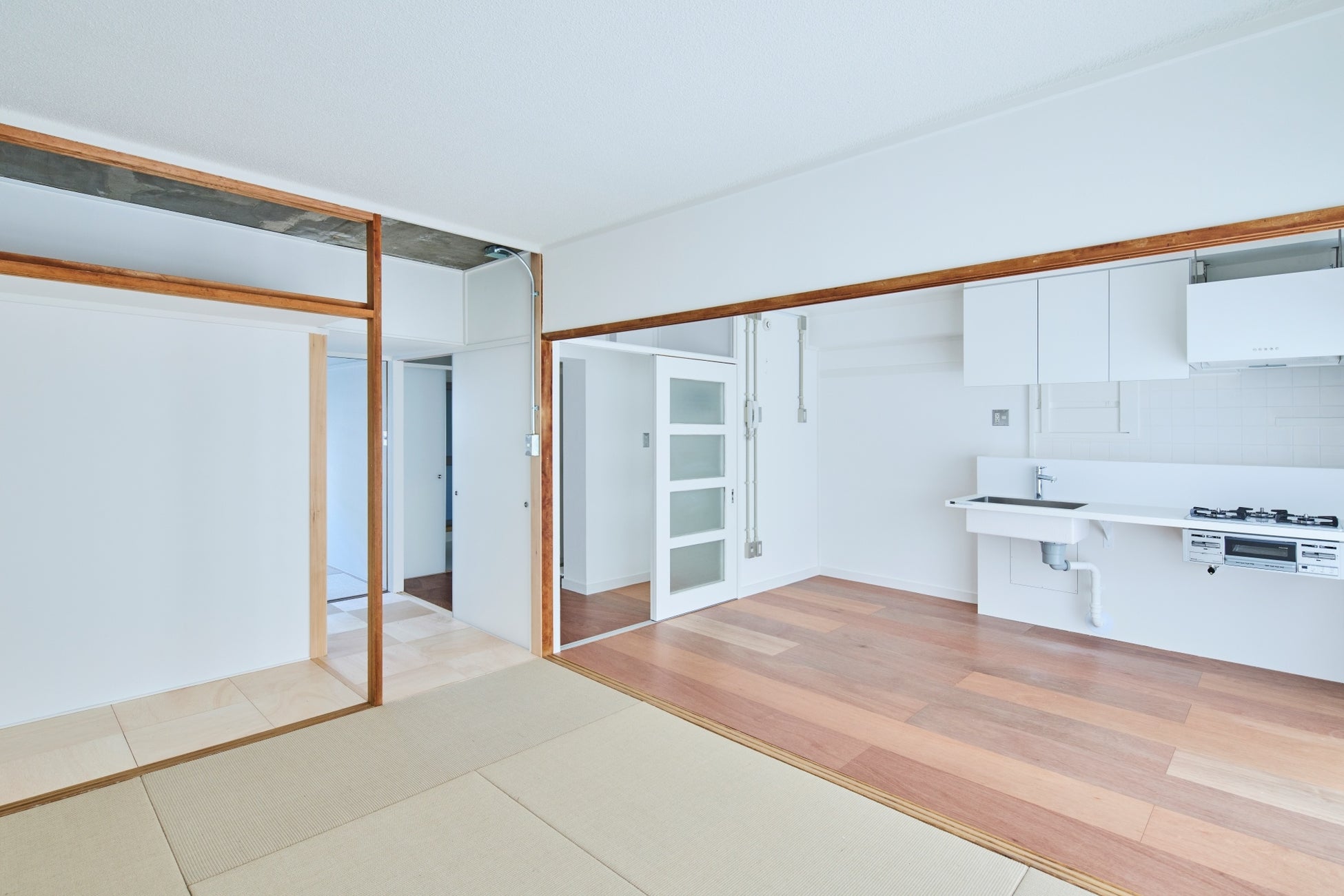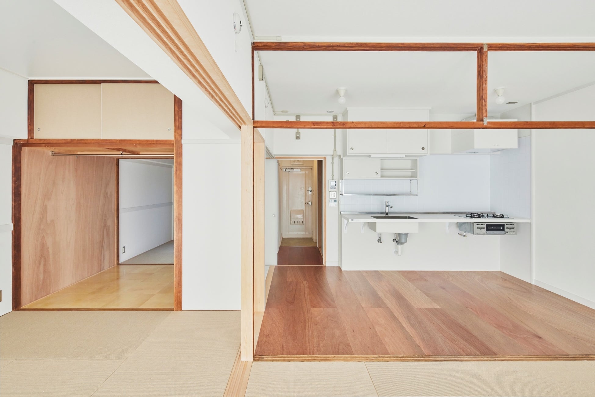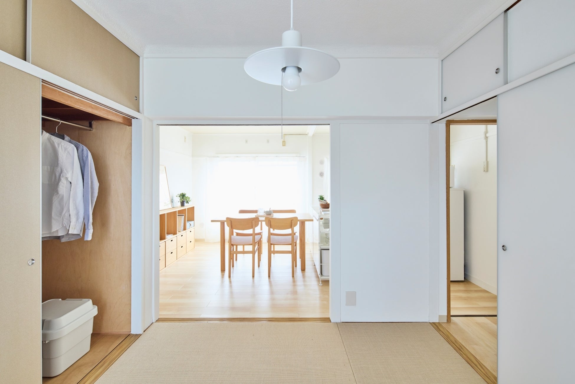 特徴:部屋の中心部にあった物入や建具を撤去し、空間を緩くつなげることで、北側の和室へ光と風が通り抜けるようになりました。