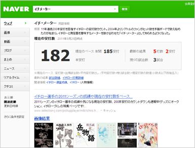 さらに、今後も引き続き、人物・映画・地域・天気情報などNAVER独自のデータベースとの連携を強化していきます。例えば、イチロー選手の安打数を表示する「イチ・メーター」で検索した場合など、Web上に存在していない情報やきれいに整理されていない正解型の情報を、独自のコンテンツで視覚的に補完。また、ニーズの高い公式ウェブサイト(例:109シネマズ)やアクセスの多いサイトの表示要素を強化するなど、ユーザーが求める情報に素早く・簡単に辿りつける検索結果を実現していきます。