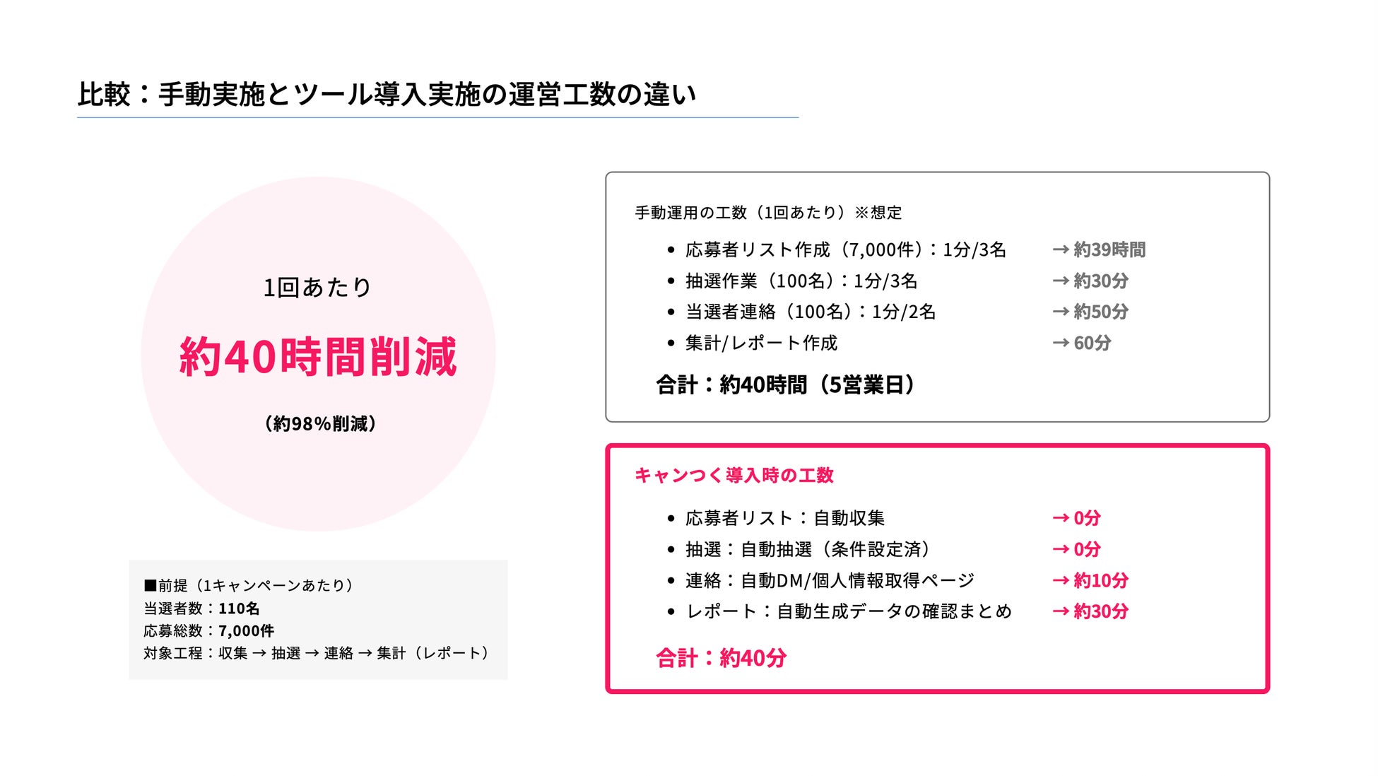 ・工数削減効果の明示(手動運用→ツール利用で約98%の工数削減)
