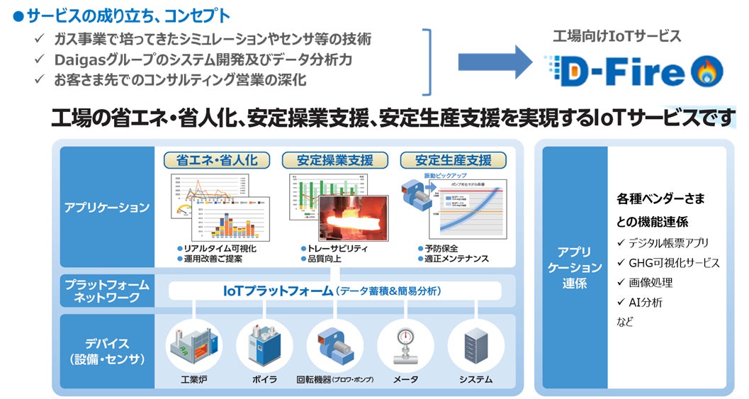 本サービスは、IoTサービスを使って省エネ・省⼈化、品質均⼀化、操業安定といった⼯場の課題解決の実現を⽬指し、様々な設備・デバイスからデータ取得しアウトプットするプラットフォームです。※5