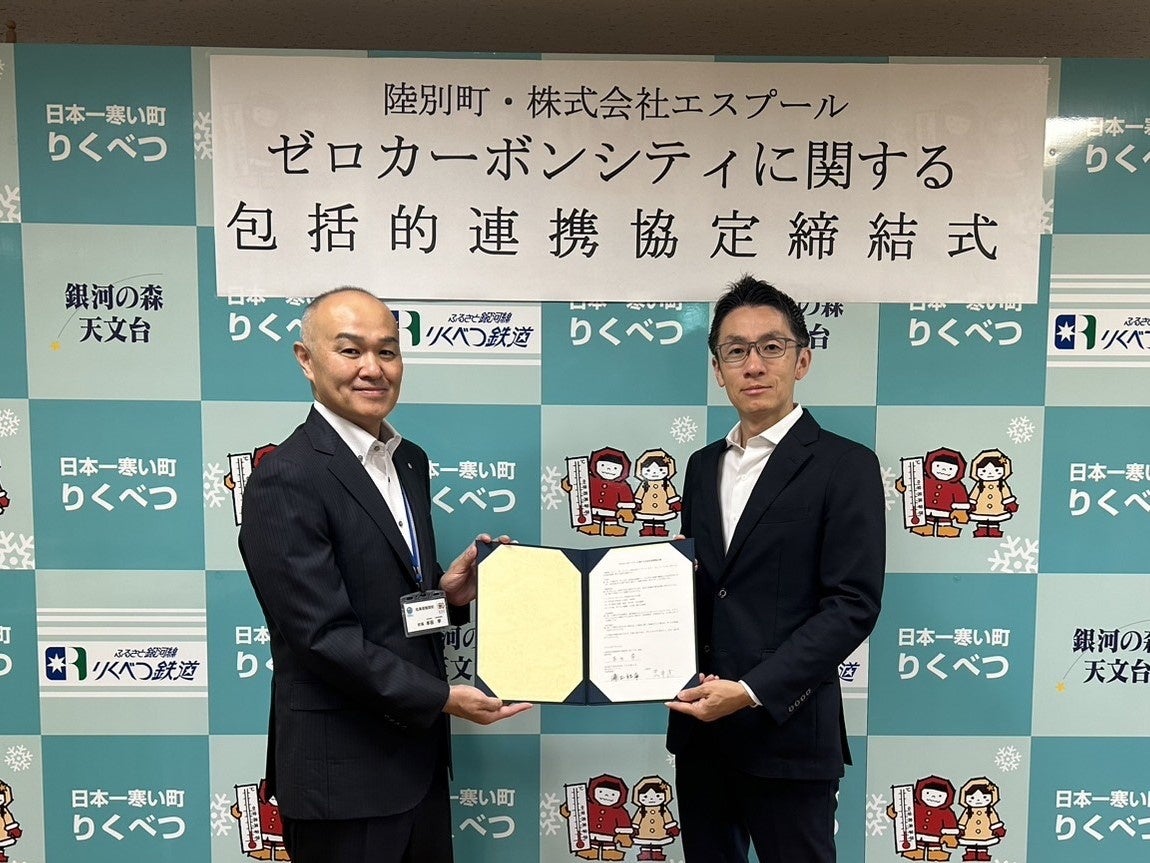 株式会社エスプール(本社:東京都千代田区/代表取締役会長兼社長:浦上 壮平/以下「当社」)は、 北海道陸別町(町長:本田 学)と包括的連携協定を締結し、同町の地域資源を活用したゼロカーボンシティへの取り組みを開始することとなりました。