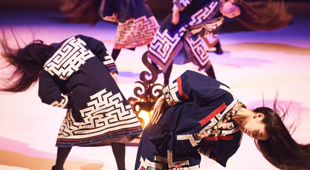 この演目は、アイヌの人々がアイデンティティとして持つ多様性を受け入れる受容性や大切な思想でもあるウレシパモシㇼ、つまりお互いに育て合う大地等をテーマに取り入れ、制作チームと阿寒湖アイヌシアター<イコㇿ>の踊り手が話し合いを重ねながら沢山の想いを込めつくられた作品です。