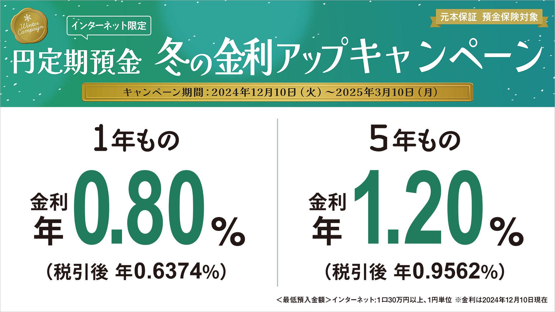 1.【すべてのお客さま向け】円定期預金 冬の金利アップキャンペーン(インターネット限定)