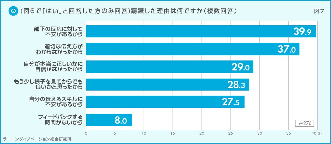 6.約6割の管理職がフィードバックを躊躇。「部下の反応が不安」「適切な伝え方がわからない」ことが理由の上位に