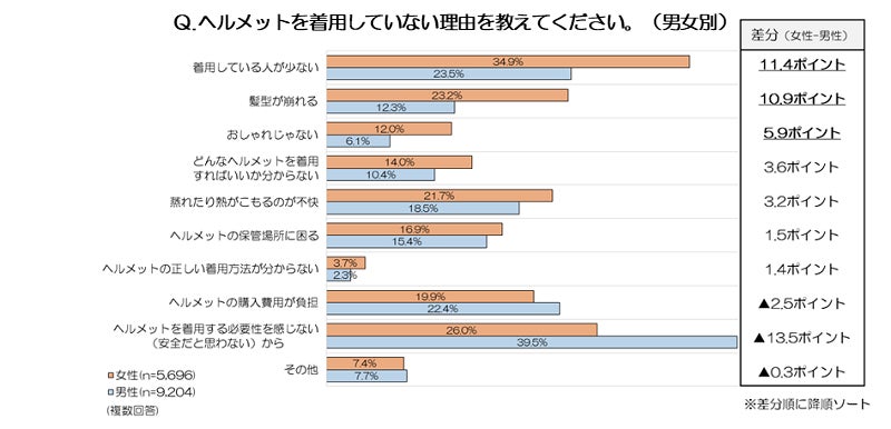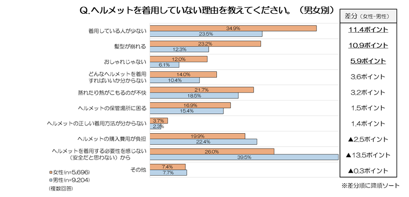 ●女性の着用率はさらに低い結果に、ヘルメット着用時の見た目を気にする声も